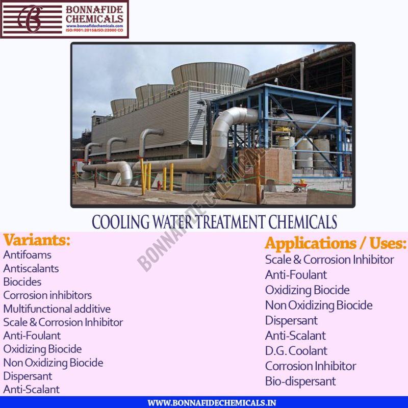 Cooling water treatment chemical specifications** include product type (biocide, scale inhibitor, dispersant), chemical composition (e.g., phosphonates, polymers), active ingredient percentage, pH, specific gravity, and purity grade. Key parameters to specify also include physical form (liquid, powder).